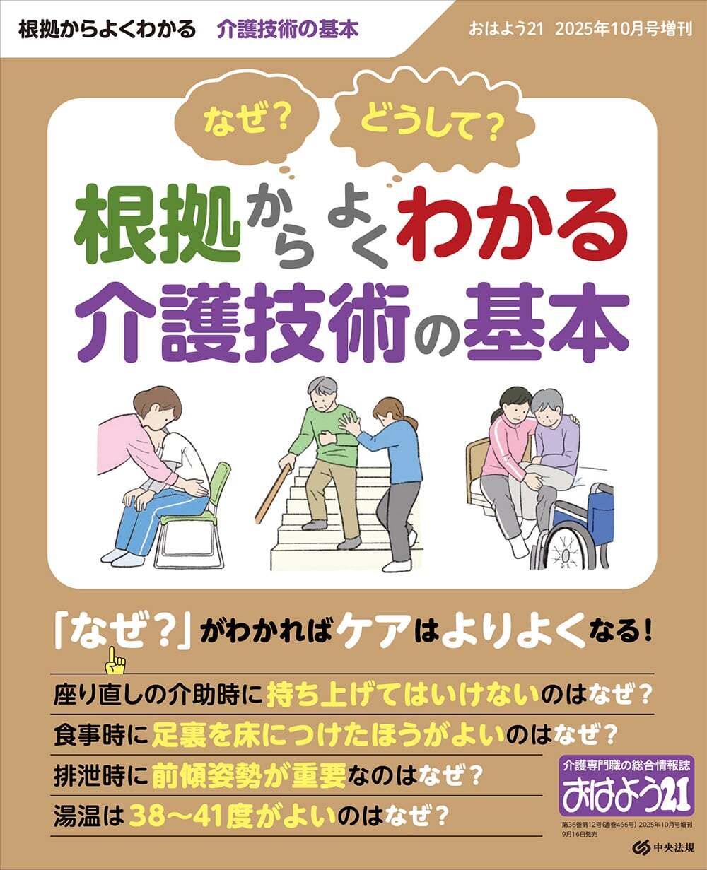 「おはよう21 増刊号」は、介護技術に関する必須の根拠を明確に説明した実践的な書籍です。本書では、介護現場で求められる知識を深めるための多くの情報を、わかりやすく整理しています。豊富な図表や実例を取り入れ、専門用語に頼ることなく、誰でも理解しやすい内容を心がけました。